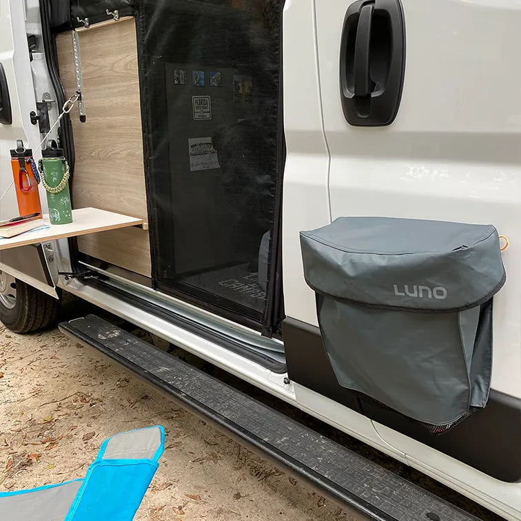 The Luno Gear and Shoe Storage Bag is a true camp companion! Crafted with water-resistant material and scratch-free magnets, this bag is your ticket to hassle-free organization while on the road. This bag is great for keeping your shoes accessible or using it as a small trash bin. We like to keep a few on hand for better organization and camp-side storage.