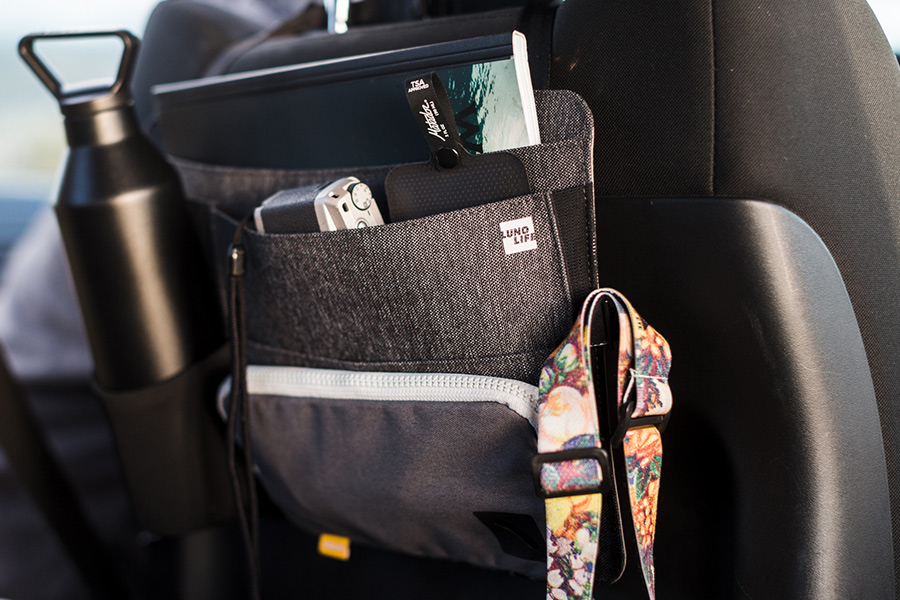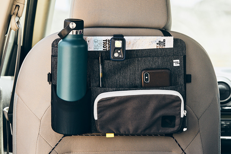 Keep all your travel essentials within arms reach while driving and car camping
